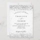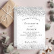Ein weißer Hintergrund auf der Vorderseite. Dekoriert mit Imitaten silbernen Glitzer. Personalisieren und fügen Sie Ihre Namen und Party-Details. Zurück: Imitate silber Hintergrund und Glitzer.