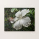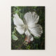 Friedliche tropische Natur (Blume des Weißen Hibiskus) im hellen Sonnenlicht der Karibik.