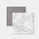 Fügen Sie Ihrer Wohngestaltung eine Touch von einzigartigem Stil mit diesem White Marble mit Personalisiertem Monogramm und Name Magnet mit Monogramm und Namen in grau modernen Sans Serif Schriftart Stil auf weißem Marmor Hintergrund. Ideal als Hauswärmespende, Hochzeitsgeschenk, Feriengeschenk, Familiengeschenk und Wiedersehen als Geschenk für alle besondere Anlässe.