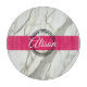 Trendige weiße Marmor natürliche Textur, fuchsienrosa Rahmen, personalisierbarer Mädchenname. Minimal schick grauer Granitstein Design.