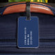 Dunkelblaue Gepäckmarke mit Grafik eines weißen Oktopus, vorne und rechts, vorne und hinten.