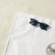 Elegantes weißes Strandtuch mit silbernen Perlen in Aquarell. Es ist sehr einfach, mit Ihren persönlichen Daten zu personalisieren.