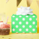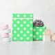Ein Umhüllungspapier, das mit einem weißen Polka-Punktmuster mit einem mittleren Abstand zwischen den Punkten auf einem hellgrünen Hintergrund gebaut wurde. Passen Sie den hellgrünen Hintergrund unter anderen Optionen an.
