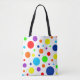 Ein Spot-Muster mit zufälligen Regenbogenpunkten auf weißem Hintergrund.