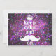 Niedlicher, mädchenhaft weißer Schnurrbart behalte eine ruhige und farbenfrohe lila und rosa Funkeln ein Glamour Stil Muster Hintergrund. Das perfekte Geschenk für ihren Geburtstag oder jede Gelegenheit