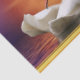 Weißer Schwan in einem See mit einem orange Goldsonnenuntergang. Mit einem Goldfolien-Beschaffenheitshintergrund.