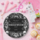 Weiße schwarze Damassohle Skull Halloween Muster Custom Paper Plate. Skulls und Damast Muster Design in Weiß und Schwarz, ideal für alle möglichen Halloween-Partys von Party in Unternehmen bis Party im Hinterhof. Dieses Design wurde mit Vintagen Illustrationen und Elementen erstellt und zu einem dunkelgotischen Look zusammengesetzt. Passen Sie den Text an, damit er Ihren Party-Details entspricht.