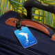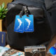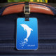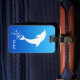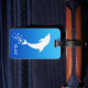 Weißer springender Delphin mit der niedlichen weißen Delphin-Silhouette der Blasen, die sich vorbereitet, vom Wasser auf blauem Hintergrund der Steigung zu springen See