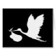 Schwarz-Weiß-Silhouette eines fliegenden Storchs, der ein Freudenbündel trägt. Niedliches neues Babydesign für Eltern.