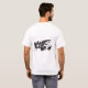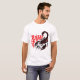 Ein nahes Aufsetzen eines weißen T - Shirt mit einem grafischen Design eines Skorpion in einem fett inspiriert Stamm-Stil, der in Schwarz und Rot dargestellt wird.