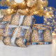 Glühender weißer Weihnachtsbaum mit goldenen Verzierungen durch Winterfenster