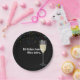 Glas Weißwein in Geschirr mit Geburtstagskaffetti und lustiges Zitat auf schwarzem Hintergrund. Zitat kann bearbeitet werden. Die Hintergrundfarbe kann geändert werden.