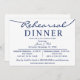 Marineblau und Weiß Elegant Script Hochzeit Probe Dinner Einladungen mit stilvollem Text und genug Platz für alle Hochzeitsdetails ist sicher, Ihre Gäste zu beeindrucken