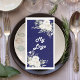 Weißes Blumenmuster, blaues Firmenlogo Serviette