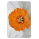 Dieser phantastische Magnet zeichnet sich durch ein wunderschönes nah-up Foto der Blume eines weißen Daffodil aus. Das Foto wurde mit Makrofotografie aufgenommen, was zu einem wunderbar detaillierten Bild der weißen Blätter mit der schönen Orangentrompete im Inneren führte.