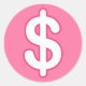 Weißes Dollarzeichen auf rosa Hintergrundkleben Runder Aufkleber