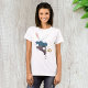 Ein weißes Kaninchen mit seinem Rücken, das weggelaufen ist. Dieses Design wirkt wirklich effektiv auf diesem Frauen-T - Shirt