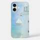Weißes Leuchtturm mit Segelboot iPhone 16 Hülle