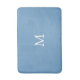 Dies ist eine mittelblaue Hintergrundbadematte mit dem Monogramm in weiß in der Mitte. Diese Badematte passt zu dem Blumenmuster Blauer Border Monogram Duschvorhang und Badetuch Set in unserem Geschäft.