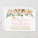 Moderne elegante Aquarellfarben Rosa Blütenblütenstube Einladungs-Karte beinhaltet Rose aus Korallenpfirsiche, weiße Blume und botanische Blätter aus Grünpflanzen. Trendy Kalligrafie Script. Gold Grad Cap.