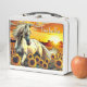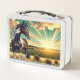 Weißes Pferd im Sonnenblumenfeld Personalisiert Metall Brotdose
