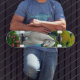 Malerei eines weißen Pferds durch Carolyn McFann druckte auf einer Skateboardplattform für Reiter und pferdeartige Fans.