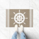Weißes Schiffs-nautischrad u. Imitat-Leinwand Fußmatte