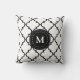 Weißes schwarzes Quatrefoil Muster-mit Monogramm Kissen