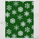 Festliches Weihnachtskonzept mit weißen Schneeflocken auf grünem Hintergrund. Ideal für Weihnachts-Scrapbooking oder ähnliche Handwerksprojekte.