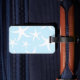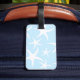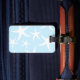 Weißes Starfish-Muster auf hellblauem. Gepäckanhänger
