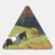 Weißes und braunes Pferd, Herbstteich Dreieckiger Aufkleber