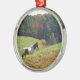 Weißes und braunes Pferd, Herbstteich Silbernes Ornament