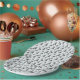 Diese Partypapierplatte kennzeichnet Quadrate in den verschiedenen Schatten von weißem und von Grau in einem pixelated Muster, das 16 Bitgraphiken in den populären Videospielen ähnelt.