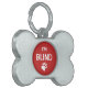 Einfache rot-weiße Markierung für blinde Haustiere. "Ich bin blind" in der Mitte und eine kleine, weiße Pfote druckende Silhouette unten.