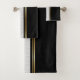 Eine Seite dieser eleganten Tücher ist festes samtschwarzes und die andere Seite ist ein Meer der Kräuselungen, mit einem Goldgrenzstreifen zwischen! Dieses unterscheidende Tuch-Set fügt herrliche Farbe und Art Ihrem Baddekor hinzu! Eine große Weise, zu beginnen Ihr Tag in der Art!