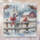 Farm themed Weihnachtspuzzle mit einem hübschen weißen Pferd, einem hübschen roten Kardinal auf dem Zaun und einer rustikalen Scheune im Hintergrund eines schneebedeckten Wintertages getan Aquarellkunst.