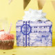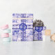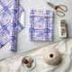 Dieses Blau-Weiß-Kaninchendesign wurde ursprünglich von Hand auf Keramik-Fliesen gemalt, sodass man die Fliesenflächen sehen kann. Es funktioniert wunderschön als Verpackungspapier-Design. Das monochrome Design besticht durch ein sonniges Ambiente in einer schneebedeckten Umgebung, umgeben von zahlreichen Bollen und Schneeflocken.