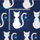Ein Silhouette Cartoon einer weißen Katze mit hellblauen Augen vor der Marine (die Hintergrundfarbe kann geändert werden). Ein blauer Stern hängt vom Schwanz der Katze.