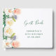 Ein Gästebuch für eine romantische 50. Geburtstagsfeier (oder jedes Alter). Dekoriert mit großen, üppig wasserfarbenen Sommergebirgen, Rose mit Blumenbeeten und Torfbäumen in Weiß-, Korallen- und Rose-Gold. Chic weißer Hintergrund. Der Titel: Das Gästebuch wird mit einem modernen handgeschriebenen Stilskript geschrieben. Grüne Buchstaben. Spine: Fügen Sie Ihren eigenen Text, grüne Buchstaben zurück: weißer Hintergrund und Blume.