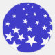 Weißsternmuster auf blauem Hintergrund Runder Aufkleber