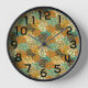 Diese Uhr hat ein modernes Design eines Plattenadapters in der Mitte des Jahrhunderts, der sich in Bräune, Off-White, Braun, Orange, Türkis, Blau und Grün überlagert.