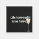 Glas Weißwein in Stemware mit lustigem Zitat auf schwarzem Hintergrund. Zitat kann bearbeitet werden. Die Hintergrundfarbe kann geändert werden.