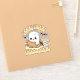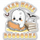 Niedliches Halloween "Lesen Sie mehr Bücher" Textdesign mit niedlichem, lustigem, smiley Geist beim Lesen einer Buchdekoration