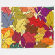 Diese große Fleecedecke hat ein Design aus einem Haufen von Blätter in Grün, Gelb, Orange, Blau, Braun und Rot auf einem hellgelben Feld.