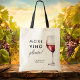 Funny more Vino Bitte Wine Themed Brautparty Tote Tasche - Ideal für ein Brautparty Thema Wein oder Junggeselinnen-Abschied Begrüßungsbeutel. Diese elegante und minimalistische Tasche mit Weinmotiven ist perfekt für Weinliebhaber. Es verfügt über ein Single Weinglas mit Rotwein mit schwarzer Schrift und Block Schriftart. Das lustige Sprichwort "Mehr Vino Bitte" eine Variante von Mehr Wein Bitte. Passen Sie diese bearbeitbare Tasche mit Ihren eigenen Eventdetails an. Machen Sie eine tolle Geschenkidee für Brautparty-Spiele, Brautparty-Favoriten oder Junggeselinnen-Abschied-Souvenirtaschen.