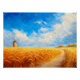 Dieses Bild zeigt ein riesiges goldenes Weizenfeld, das sich unter einem strahlend blauen Himmel erstreckt. Ein schmaler, schmaler Pfad schlängelt sich durch die geschwungenen Treppen und führt in der Ferne zu einer charmanten alten Windmühle. Weiße weiße Wolken treiben über den Himmel und fügen der Szene Tiefe und Bewegung hinzu. Die warmen, sonnigen Farbtöne des Feldes kontrastieren wunderschön mit der knusprigen Blues des Himmels und schaffen ein Gefühl der Ruhe und des ländlichen Charmes. Die Komposition erinnert an die friedliche Schönheit der Landschaft, wo Natur und Tradition harmonisch zusammenleben.