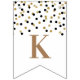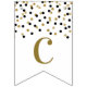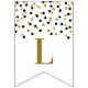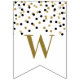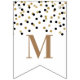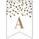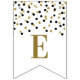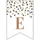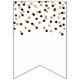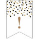 Willkommen zurück Banner mit schwarzen und goldenen Konfetti Muster.