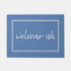 Es ist lustig, weil es wahr ist. Du bist willkommen. Diese humorvolle Türmatte ist für Introvertierte, sozial und sozial Unbehagliche, die Gäste mit ein wenig Zögern und vielleicht sogar etwas Angst empfangen. Einfache, elegante Schrift-Typografie auf einem schieferblauen Hintergrund. Unerwartet, sonderbar und nur ein wenig sarkastisch.