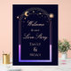 Welcome To Our Love Story Navy Blue Celestial Wedding Welcome Sign Celestial Cosmic Galaxy Space Acrylic Wedding Welcome Sign features a rainbow sun, moon and stars frame on a dark navy blue background. Inside the frame features the text "Welcome to our love story" with your names below in elegant peach calligraphy script. Designed for you by ©2024 Evco Studio www.zazzle.com/store/evcostudio