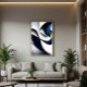 Abstrakte Komposition in Weiß- und Blautönen, mit fließenden Formen, die Ruhe und Fluidität vermitteln. Ein Stück, das Ruhe und Harmonie hervorruft, perfekt für ruhige Räume.